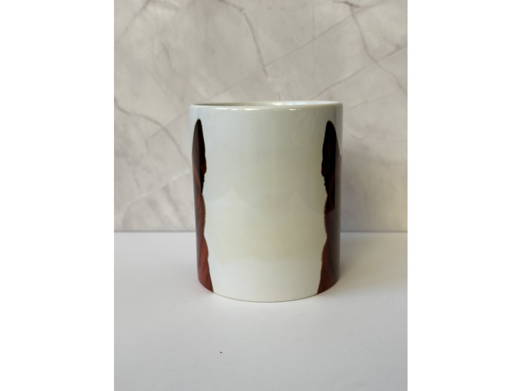 Hrnek s belgickým ovčákem (tisková vada – tmavší stín)