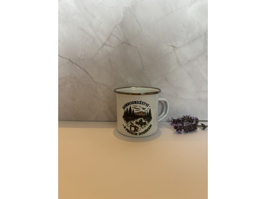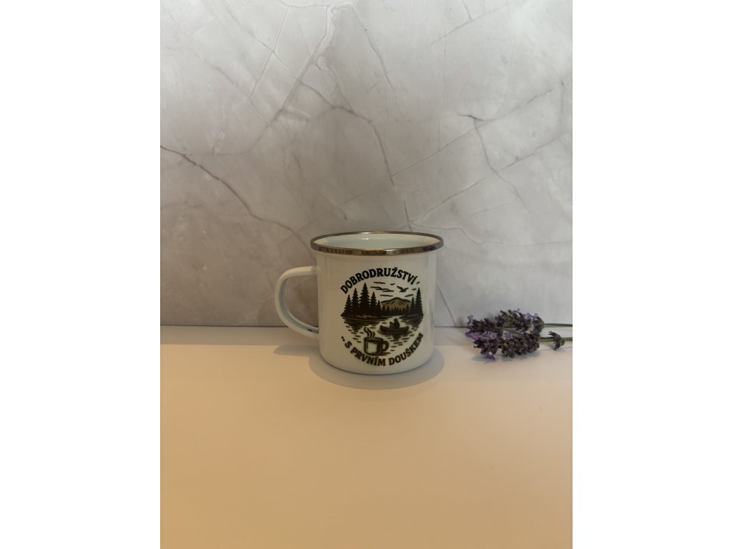 Plecháček Dobrodružství – 380 ml „Dobrodružství… s prvním douškem.“ Ideální hrnek pro milovníky přírody a ranní kávy pod širým nebem.