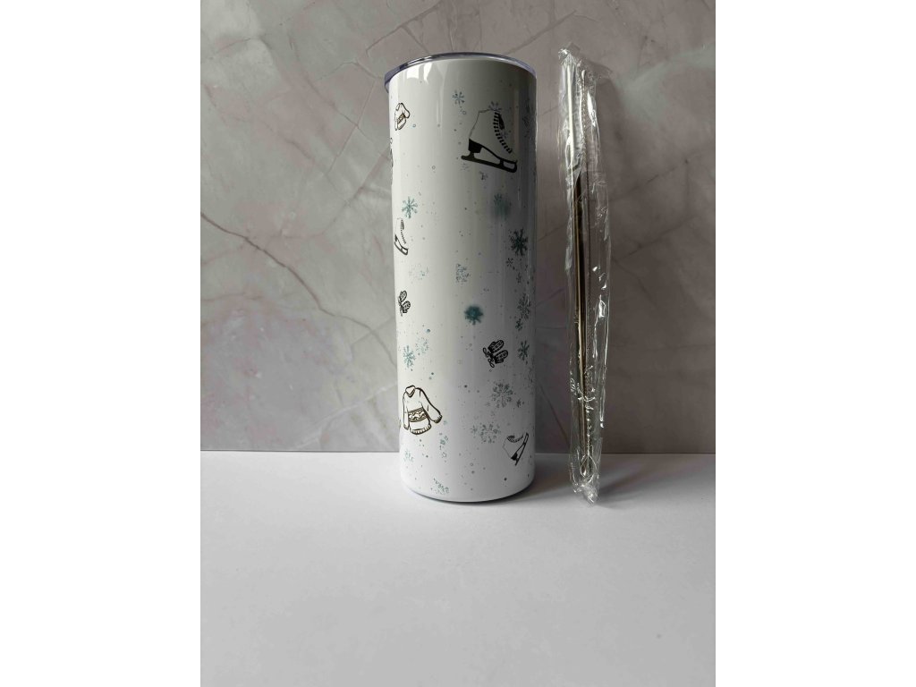 Stylový termohrnek s jemným zimním motivem vloček, bruslí a rukavic je ideální společník do chladných dnů. Udrží váš nápoj teplý i studený po delší dobu a díky štíhlému tvaru perfektně padne do ruky i do držáku v autě. Skvělá volba pro pracovní dny, výlety, sport i každodenní nošení.