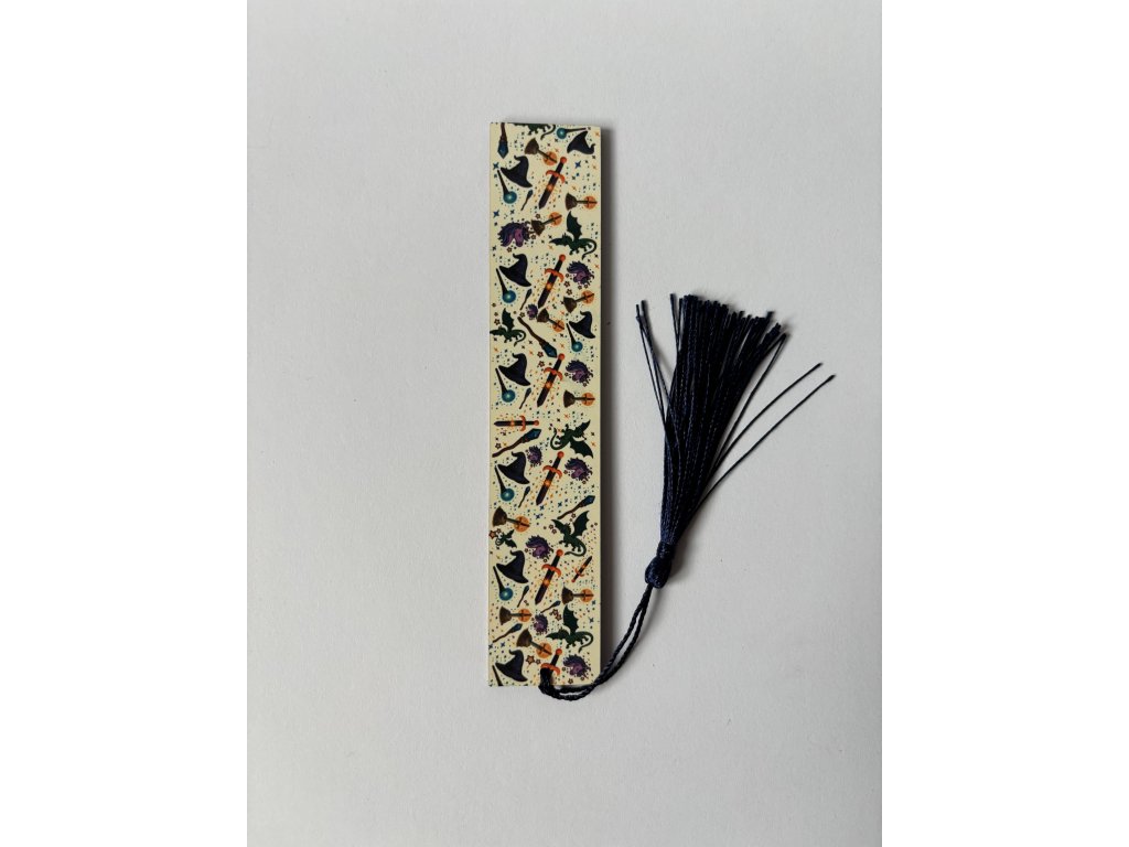 Nechte se vtáhnout do světa magie! ✨ Tato originální záložka s fantasy motivy – draky, kouzelnickými hůlkami a klobouky – je dokonalým doplňkem pro každého milovníka čar a dobrodružství.