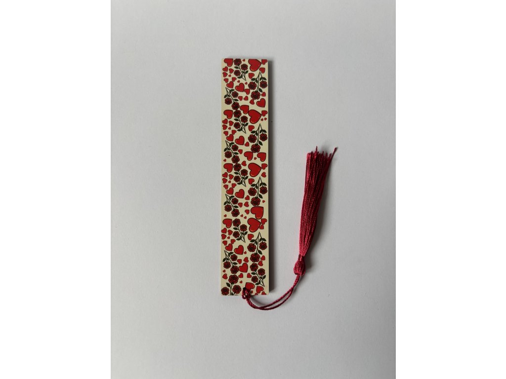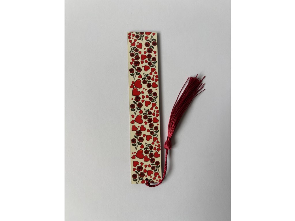 Jemný motiv růží a srdcí dodá čtení kouzelný nádech. Díky vínové třásni působí elegantně a krásně ladí s každou knihou.